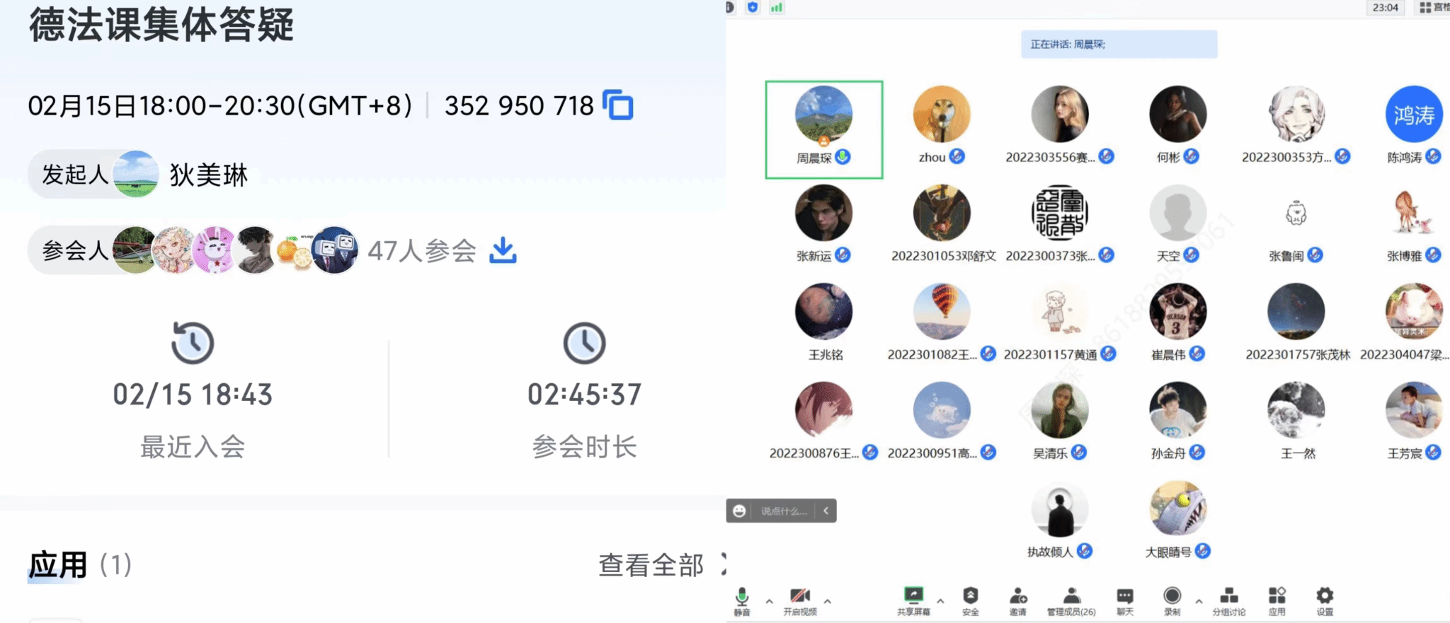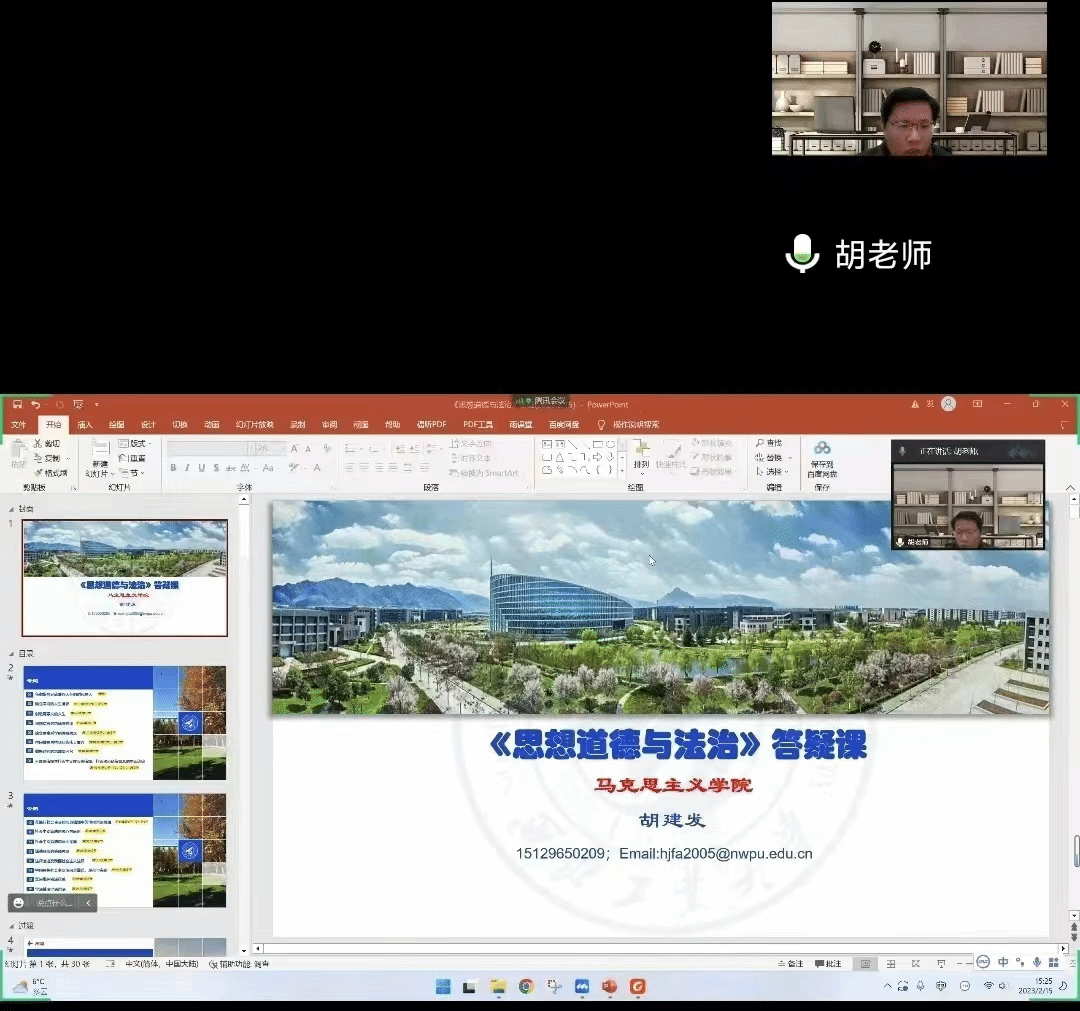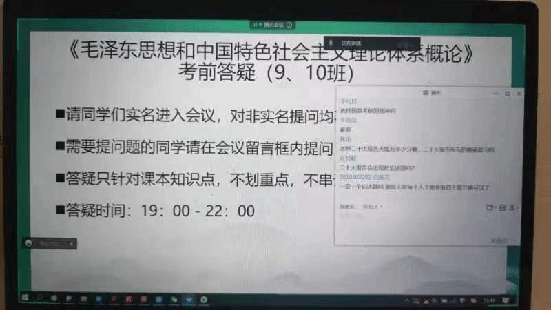 德法与形势政策系于2023年2月15日下午组织12位专兼职教师分别以在线会议的形式就《思想道德与法治》课程进行了考前集体答疑。答疑覆盖本学期全校《思想道德与法治》课程23个大班,共计大一本科生2300余人。本次集体答疑,一是加深了同学们对知识的理解和掌握,学习中及时获得了释疑解惑,对复习增强了兴趣和信心;二是时长三小时的答疑辅导,既是各任课老师对学生学习的辅导过程,又是对学生此次集体复习的精神陪伴。三是作为精准、高效的点对点答疑解惑,加深了师生间的情感联系。