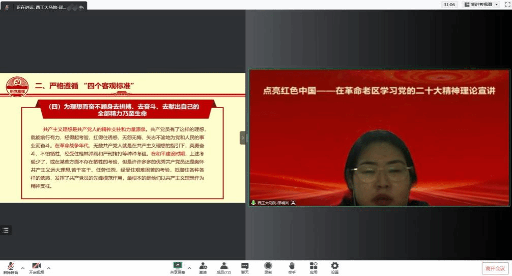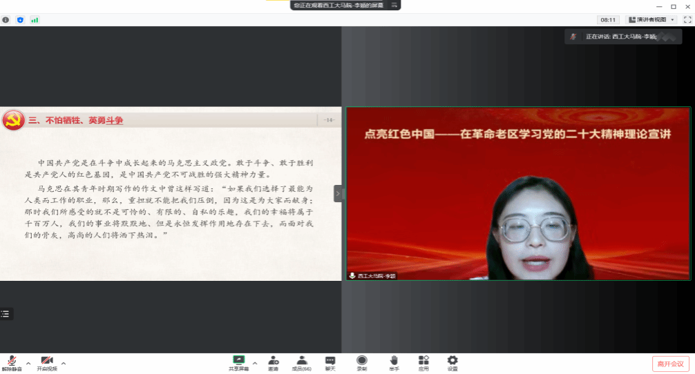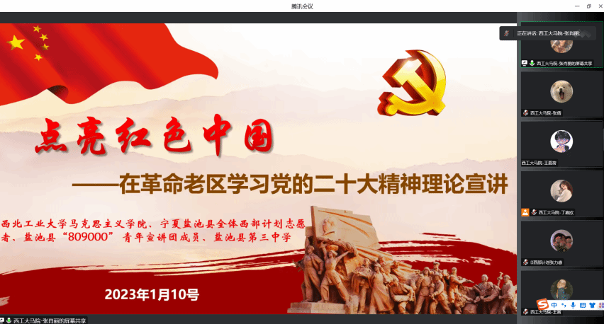 学习好、宣传好、贯彻好、落实好党的二十大精神,是当前和今后一个时期全党全国的首要政治任务。为引导广大青年深入学习和深刻领会党的二十大精神,增强守初心、担使命的思想自觉和行动自觉,2023年1月10日,由国产色情 王换老师指导的20余名硕士研究生组成的“点亮红色中国”党的二十大精神进基层·青春逐梦行实践队,面向宁夏革命老区团员青年开展党的二十大精神宣讲。本次宣讲由张肖丽同学主持,受众包括来自宁夏盐池县西部计划志愿者、盐池县“809000”青年宣讲团成员、盐池县第三中学学生等近500名同学。