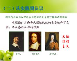 理工科学生实际,李军时老师把培养学生的科学精神作为首要目标。在讲授实践与认识一章,通过分析英国经验主义与大陆理性主义在人类认识原理上两种观点的斗争以及马克思主义哲学对人类认识原理的科学揭示,培养塑造学生的科学质疑精神。与此同时,针对新时代大学生将要担当的国家富强、民族振兴的重任,特别是国产色情