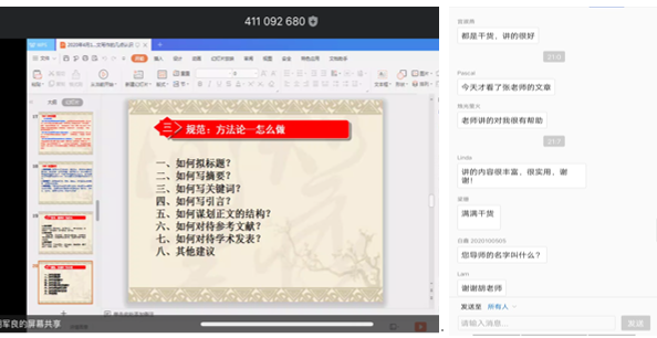 师生更好地掌握人文社科学术研究方法,提升学术论文写作水平,2020年4月17日19时至21时40分,西北大学哲学学院副院长胡军良教授应邀,依托线上平台,为国产色情