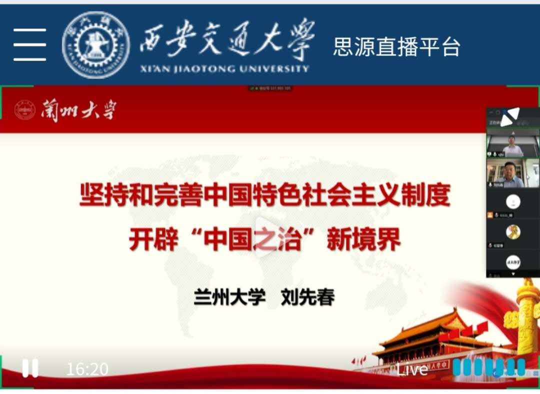 教授、博士生导师,中央马克思主义理论研究和建设工程首席专家,教育部教学指导委员会委员刘先春教授线上为全省高校师生作了《坚持和完善中国特色社会主义制度开辟“中国之治”新境界》的主题报告。