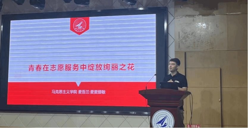 第23届研究生支教团成员麦吾兰·麦麦提敏进行个人支教经历的分享。在谈到自己在宁夏盐池支教期间丰富多彩的经历时,他认为这次经历是他整个大学生活的一抹亮色。作为支教老师,他吃苦耐劳,乐于奉献,用实际行动诠释了“从西部来,到西部去,到祖国最需要的地方去”,使他切身感受到以奋斗激扬青春所带来的酣畅淋漓。此次支教让麦吾兰·麦麦提敏荣获了宁夏回族自治区盐池县2021年度大学生西部计划优秀志愿者称号。