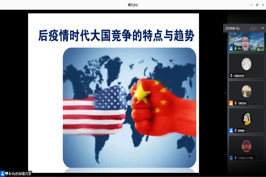 李莉教授围绕“后疫情时代大国竞争的特点和趋势”主题,从当下我国所处的国际大环境、未来中美可预见的摩擦、中美关系的趋势三个部分分别做了重要专题报告。首先,李莉教授探讨了当下中国所处的国际大环境,指出中美关系正在发生质变,我们要做好迎头相撞的准备,与此同时,中美军事领域竞争态势也愈来愈明显。其次,李莉教授指出了未来中美有五方面可预见的危机:政治危机;经济和科技危机;地缘权力争夺危机;全球治理体系的重新洗牌;中西方价值观和意识形态之争。面对这些危机,李莉教授引用了一句“太平洋之大,足可以容纳中美两国”表明了中方的态度。最后,李莉教授提到影响中美关系的外延出现了很多变化,混合成为一个态势,并指出自主创新,自主管控,自力更生这几个字从来没有像当前这么紧迫过。
