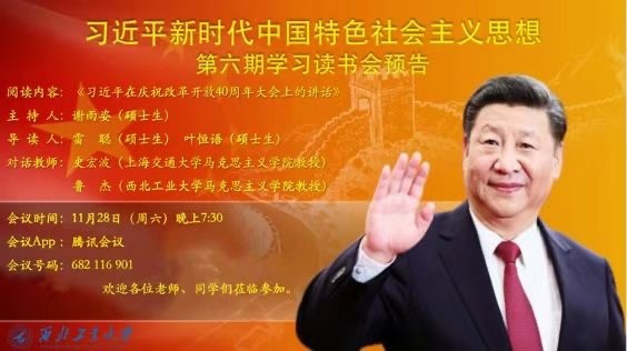 习近平新时代中国特色社会主义思想学习读书会至今已经举行了六期,师生们共同感受到阅读有助于提升自身的素养与思想,坚定了做有学术担当的新时代学者的信心。我们相信,全体师生共同努力,一定会把习近平新时代中国特色社会主义思想学习读书会举办的越来越好,将其打造成为马克思主义理论研究方面具有学术影响的西工大品牌。