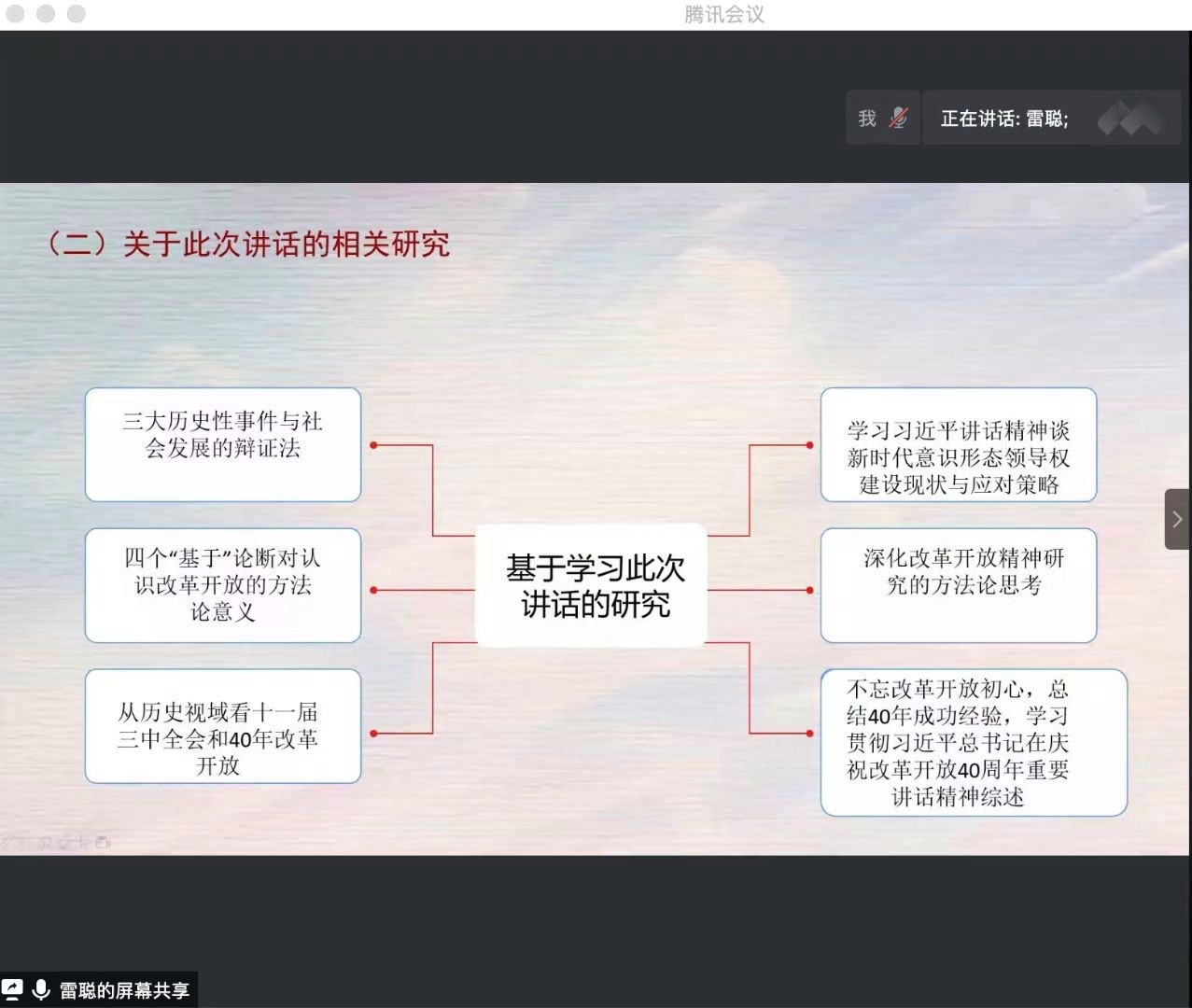 思想政治教育系主任鲁杰老师与多位硕博生共同参加,以《习近平在庆祝改革开放40周年大会上的讲话》作为本次读书会的主要探讨内容,在本次读书会上大家展开了深入的交流与讨论。