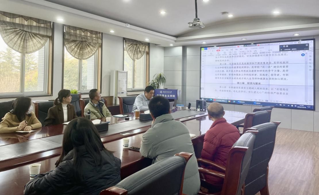 专职辅导员考核办法(试行)》两个文件,并对文件中所明确的辅导员职责要求、选任聘用机制、考核内容、职务晋升等进行了详细地解读,与会教师认真学习并做了详细的记录。