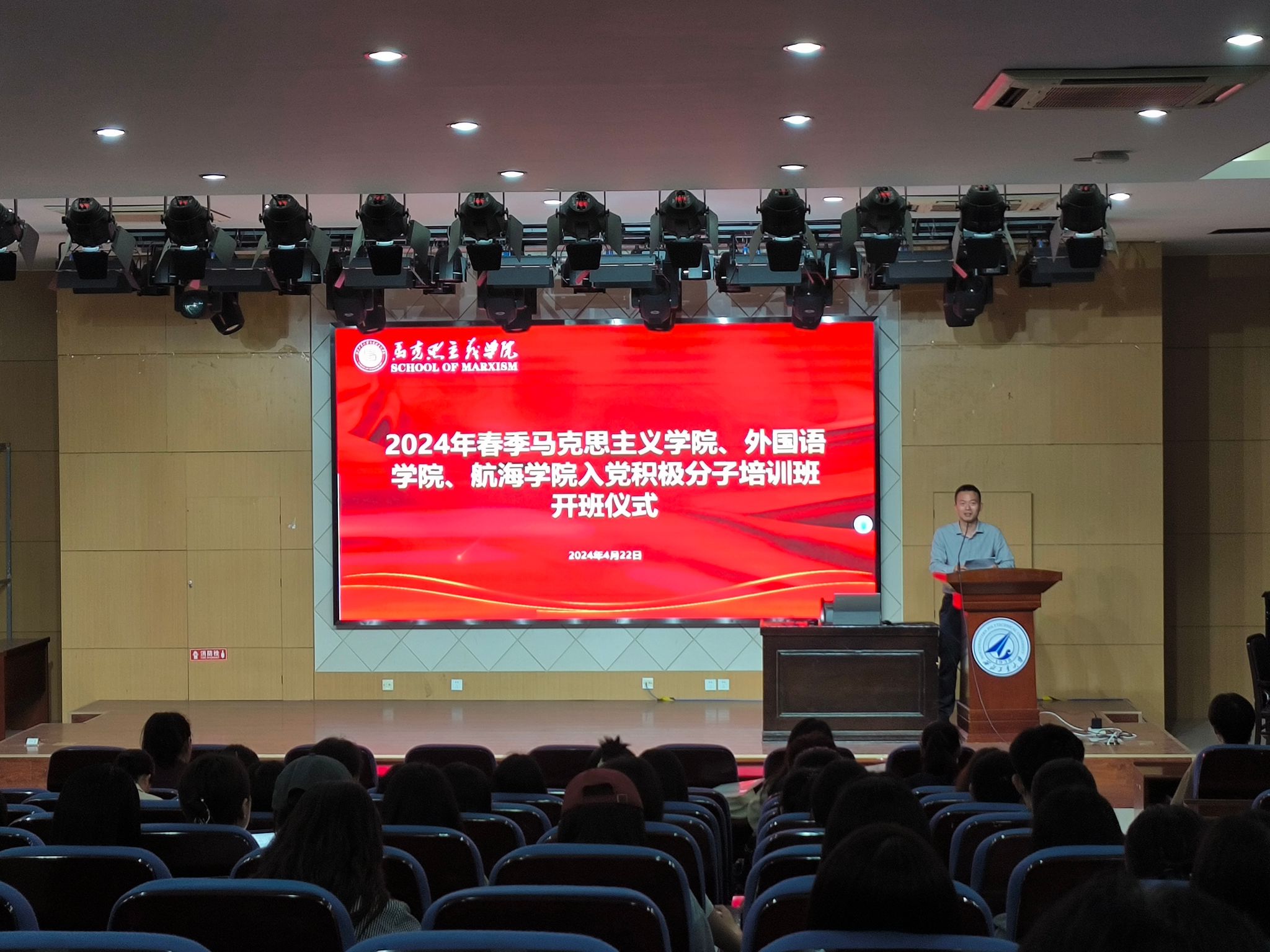 、外国语学院和航海学院联合举办了入党积极分子培训班,参加学生230余人,培训聚焦学理论、强党性、塑价值三个方面,包括专题讲座、宣讲研讨、红色观影、实践研学等环节。在开班仪式上国产色情