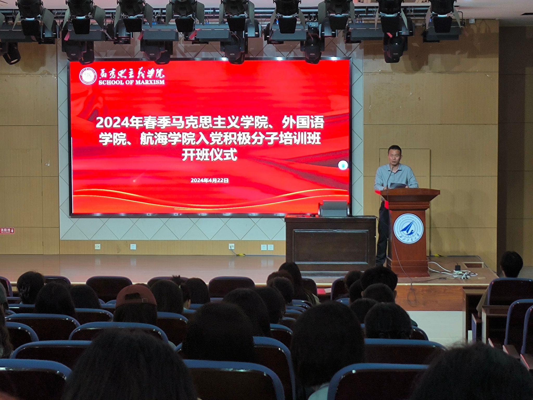 、外国语学院和航海学院联合举办的入党积极分子培训班开班仪式上,为师生们讲授党纪学习教育专题党课。