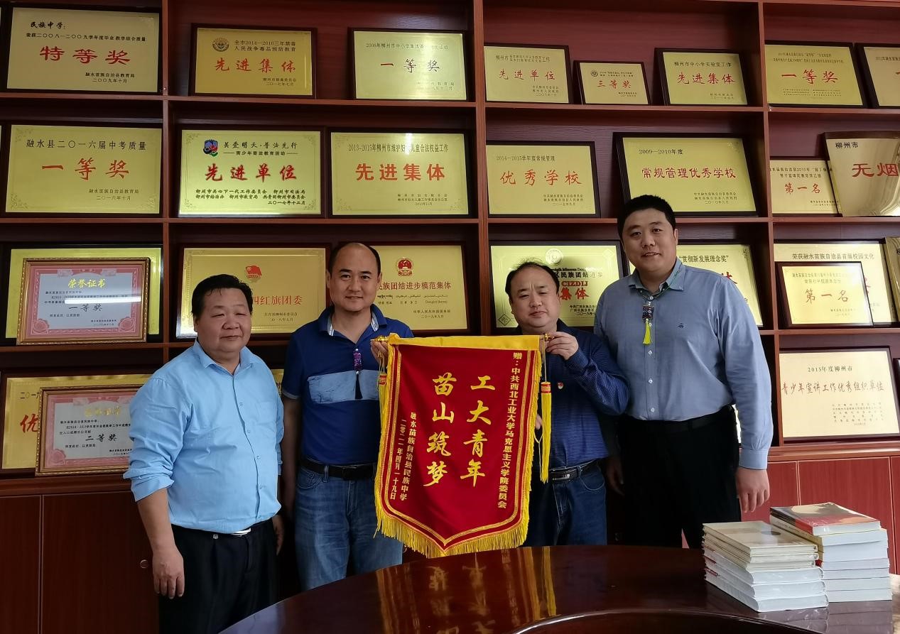副院长张云龙、党委副书记李刚、全国党建工作样板支部学院硕士生党支部书记王慧新等师生代表一行赴融水苗族自治县民族中学开展“做实事·献爱心”党史学习教育。