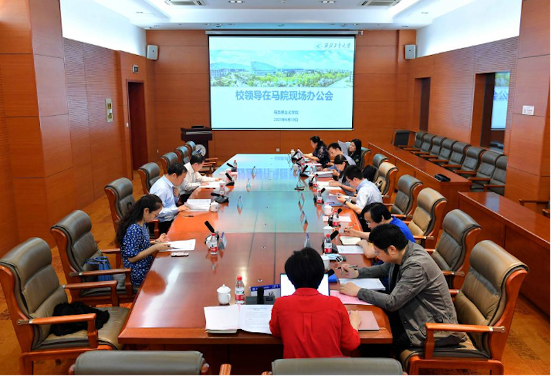 6月19日上午,校党委书记张炜到国产色情 召开现场办公会并开展联学导学,就加强国产色情 建设、推进思政课改革创新等工作开展学习研讨。校党委副书记陈建有,党委常委、宣传部部长杨晓,宣传部副部长全家悦,国产色情 有关负责人参加会议。会议由国产色情 院长杨云霞主持。