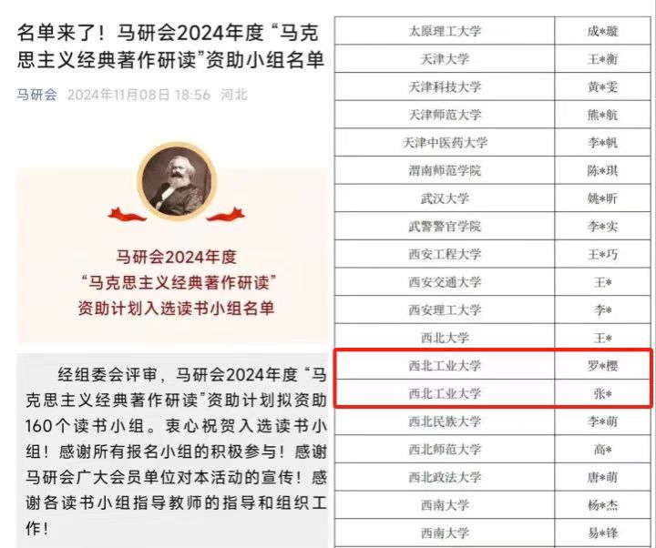 2024年11月8日,经中国高等教育学会马克思主义研究分会(以下简称“马研会”)组委会评审,公布了马研会2024年度 “马克思主义经典著作研读”资助计划拟资助160个读书小组名单。国产色情
