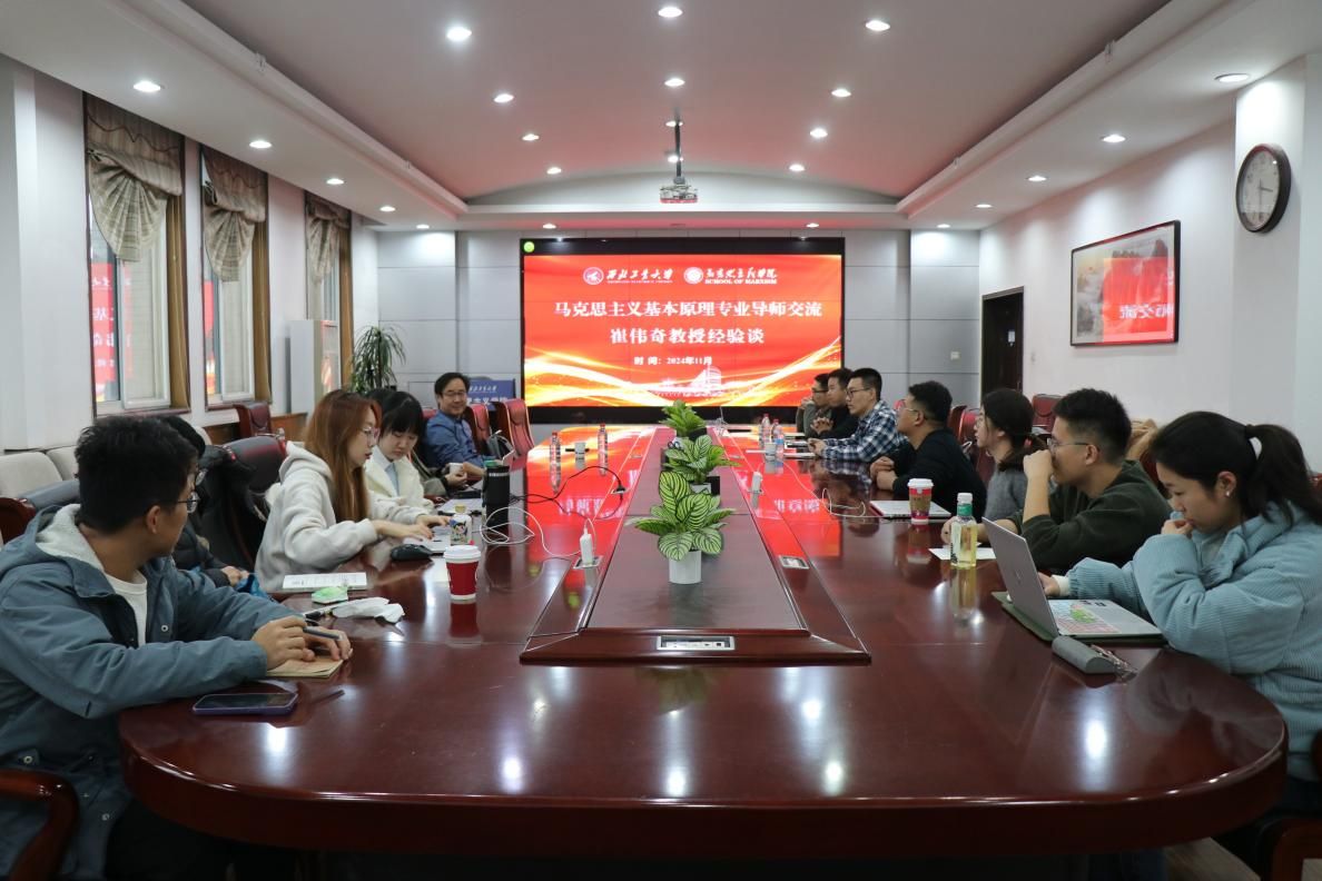 马克思主义基本原理系举办导师座谈会。会议特别邀请中国自然辩证法研究会副秘书长、《自然辩证法研究》副主编、北京化工大学崔伟奇教授做经验分享,马原系部分导师以及学生参加会议。学院副院长张云龙教授主持座谈会。