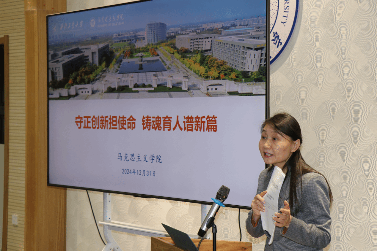 随后,贺苗通报了期末及假期公共课工作安排。她表示,思政课是学院工作的重中之重,同时强调临近期末,各位老师要认真对待课程考核工作,确保成绩公正合理。假期学院将继续开展集体备课活动,鼓励线上线下结合,通过共同努力,学院将继续强化学科特色,以“总师育人文化”为引领,推动教育事业的发展。