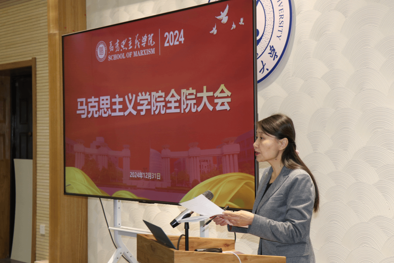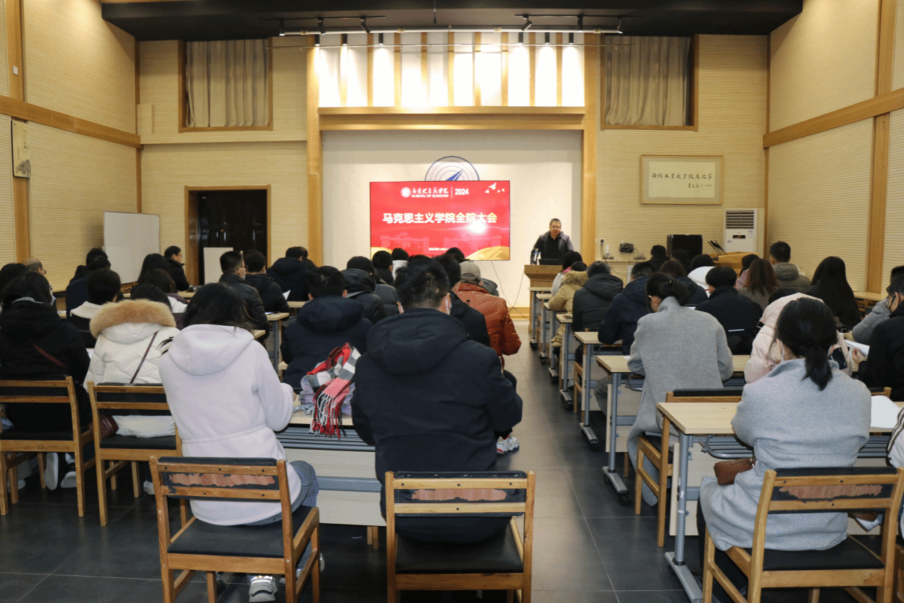 在友谊校区校友之家召开2024年终全院大会,学院全体教职工及学生代表参加会议。会议由学院党委书记王彦革主持。