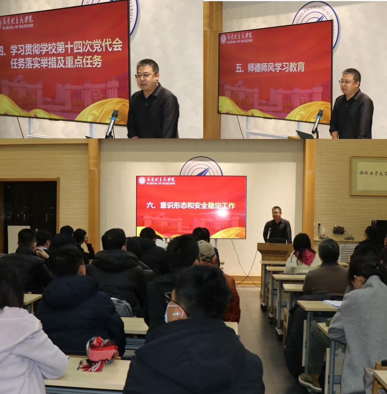 最后王彦革领学学校第十四次党代会任务落实举措及重点任务。他表示,学校对学院高度期待,思政课是高校坚持社会主义办学方向的重要阵地。国产色情