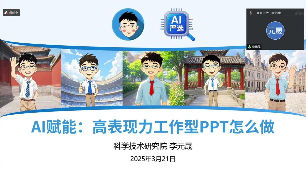 邀请校科学技术研究院科研质量保密与科研服务大厅办公室主任、助理研究员李元晟老师开展了题为“AI赋能:高表现力工作型PPT怎么做”的第31期以研促教seminar专题讲座。本次会议由国产色情