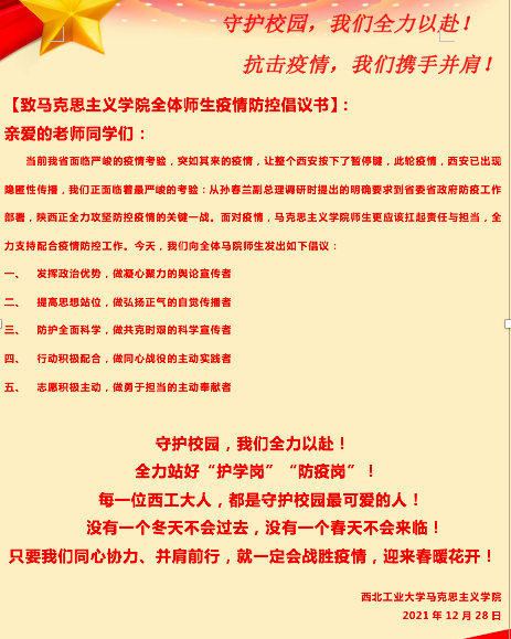 师生积极报名成为志愿者,参与物资搬运、秩序维护、检测实操等工作,为疫情防控工作奉献自己的力量。时值冬日,天气寒冷,但是志愿者们没有退缩,坚信此刻的困难一定会过去,在疫情面前我们一定会胜利,他们展现了西工大人的精神风貌。