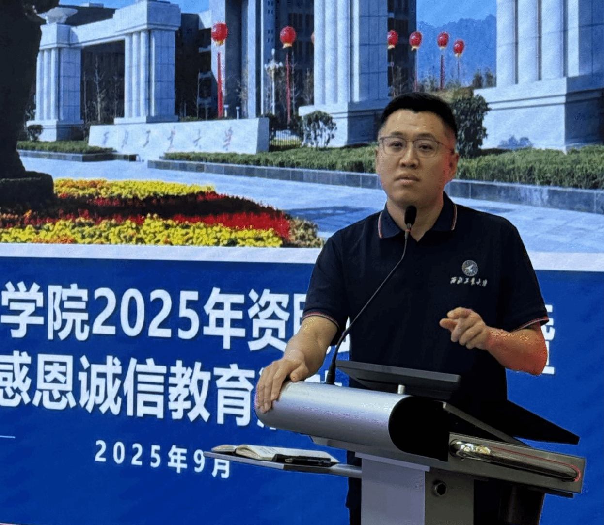 于9月26日上午成功举办2025年资助政策宣讲暨感恩诚信教育活动。活动由学工主管刘敏主持,学院党委副书记耿云辉、辅导员董润与2025级本硕博同学共同参与了本次活动。