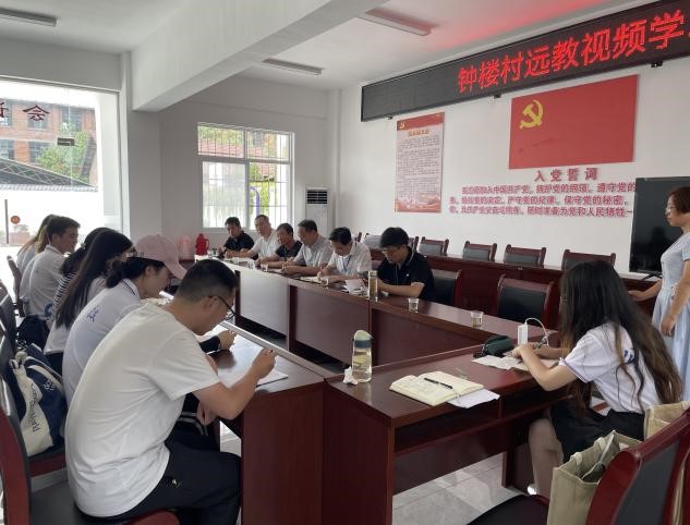 为切身感受乡村社会沧桑巨变,体悟特色文旅产业对乡村振兴的助力作用,“青春筑力”实践队来到了县级乡村振兴示范村——钟楼村。钟楼村村支书方书记热情地接待了实践队,并带领实践队来到了著名画家方济众先生的故居。参观完后,实践队一行人来到钟楼村村委会进行座谈。方书记指出:“钟楼村作为省级乡村振兴示范村,在推动乡村发展上,有着因村制宜的规划”。实践队队员与村组织部领导围绕钟楼村如何深入推进文旅融合,进一步发展文化旅游产业,运用文化资源助力钟楼的乡村振兴等问题深入进行探讨。