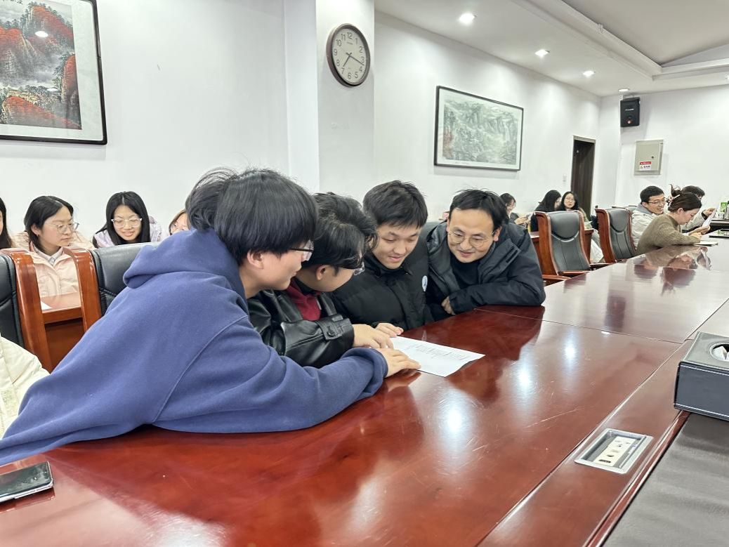 针对大家的困惑,老师们带来了宝贵的“干货”分享。首先,班主任杜轶伦老师聚焦学业,强调研二应合理规划论文进度,注重理论联系实际。王换老师结合近年就业的相关数据,分析了就业形势并介绍了学院辅导讲座、“访企拓岗”等就业帮扶举措。张天浩老师在总结发言中不仅提醒各位同学要在返乡途中保持高度警惕,防范各类不安全事宜,还鼓励大家要在学习和就业时保持自信、勇敢尝试,在平衡生活的同时积极展现自我。