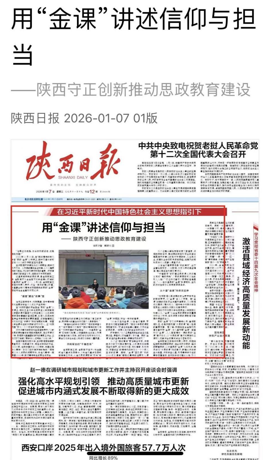 “金课”巡讲活动前期受到《陕西日报》报道,集中展示了陕西高校思政课教师的教学风采与育人成效。接下来,学院将以此次巡讲为契机,持续深化思政课改革创新,做强思政“金课”品牌,推动思政课建设提质增效,为培养担当民族复兴大任的“三航”时代新人贡献更大力量。