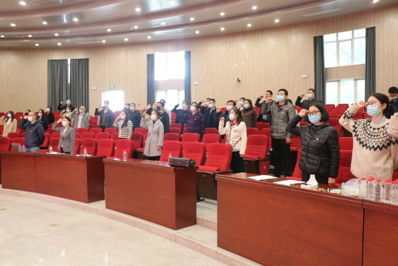 接着,举行了庄严的思政课教师从业再宣誓暨新进教师入职宣誓仪式。全体教师右手握拳,面对党徽庄严宣誓,立志成为“四有”好老师,终身为国家富强、民族振兴和教育繁荣而努力奋斗,积极为祖国和人民培养德智体美劳全面发展的社会主义建设者和接班人。掷地有声的誓词,是每一位教师对教育事业的庄严承诺。