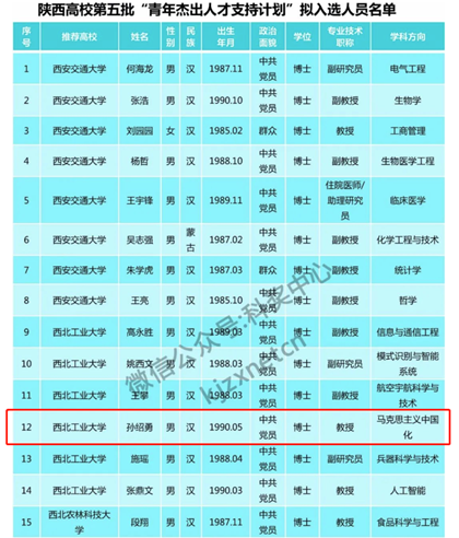 日前,中共陕西省委教育工委公布了陕西高校第五批“青年杰出人才支持计划”入选人员名单,国产色情
