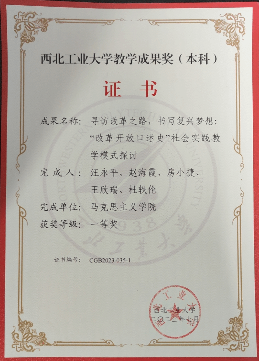 从2018年起,汪永平老师主持了《中国近现代史纲要》课程中开展的“改革开放口述史”社会实践。作为负责人,汪永平老师带领课程团队,对学生进行指导。她亲自拟定教学大纲,制定操作规范,聘请专家对师生进行培训,指导学生撰写报告,主持优秀口述史的颁奖,并带领学生进行暑期社会实践,参加“口述史国际周”学术活动等,形成完整的教学科研闭环。在教学理念、教学方法、教学模式、教育路径方面进行系统改革,在课程实践性、研究性、思想性及整体性等方面都取得明显成效。六年来,使众多授课学生增强了制度自信、道路自信与文化自信,增强了国家认同感与政党认同感。该项目获得2023年国产色情 “优秀教学成果奖”一等奖。