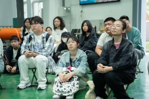 曾教授首先为大家介绍了航海学院的历史沿革、专业设置、研究方向,讲述了优秀校友的精彩事迹和取得的代表性成果,继而带领同学们参观翱翔重点实验室,讲解仪器设备、模型展项的相关数据和研发经历,让在场的每一位对出海测试、水下攻防、深海对抗等方面有了具体且生动地感知。在近一个小时充分热烈的互动环节中,同学们不仅围绕自身的研究兴趣向曾教授进行提问,还就人才培养、技术更新等方面同老师深入交流。曾教授对每一位同学提问都予以肯定并耐心解答,勉励大家积极学习、献身国防。