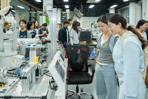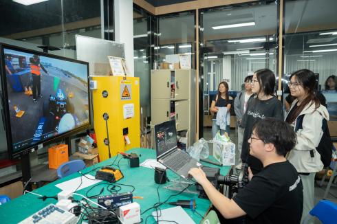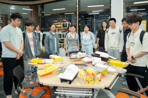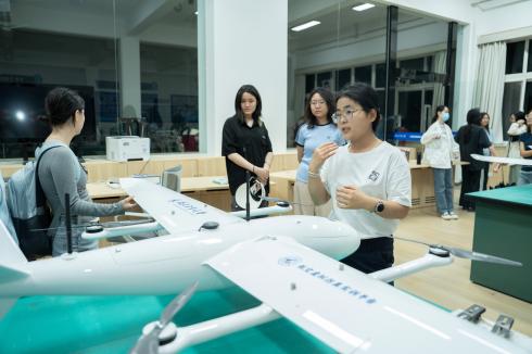 随后组织学员系统参观创新实践社区,讲解“无人飞行器实验室”“机器人创新实践工坊”和“创意孵化空间”等专项平台的功能定位与运行机制,使同学们得以直观感知科技创新实践场域的魅力,有效激发工程实践的探索热忱。通过系统阐述多个创新项目成果转化案例,梁老师具体论证了理论知识向工程应用转化的可行路径,显著强化了同学对专业发展前景的认知信心。