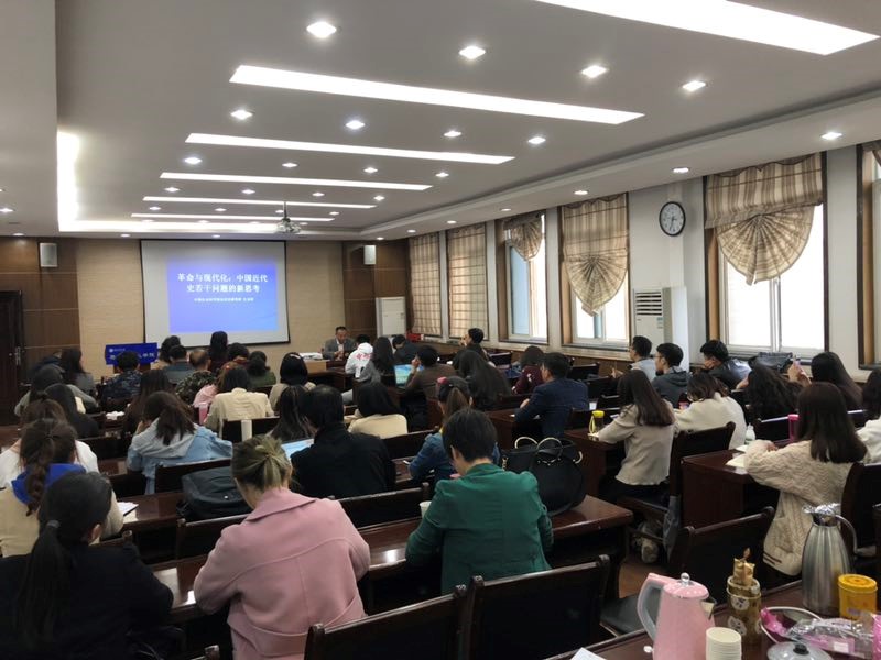 3月27日下午,在国产色情 305会议室,中国社会科学院近代史所研究员左玉河教授应邀为国产色情 师生作了题为《革命与现代化:中国近代史若干问题的新思考》的学术报告。国产色情 郝保权副院长致欢迎词,秦燕教授、汪永平教授、张淑华副教授等教师以及博士、硕士研究生共40余人共同聆听了报告会。
