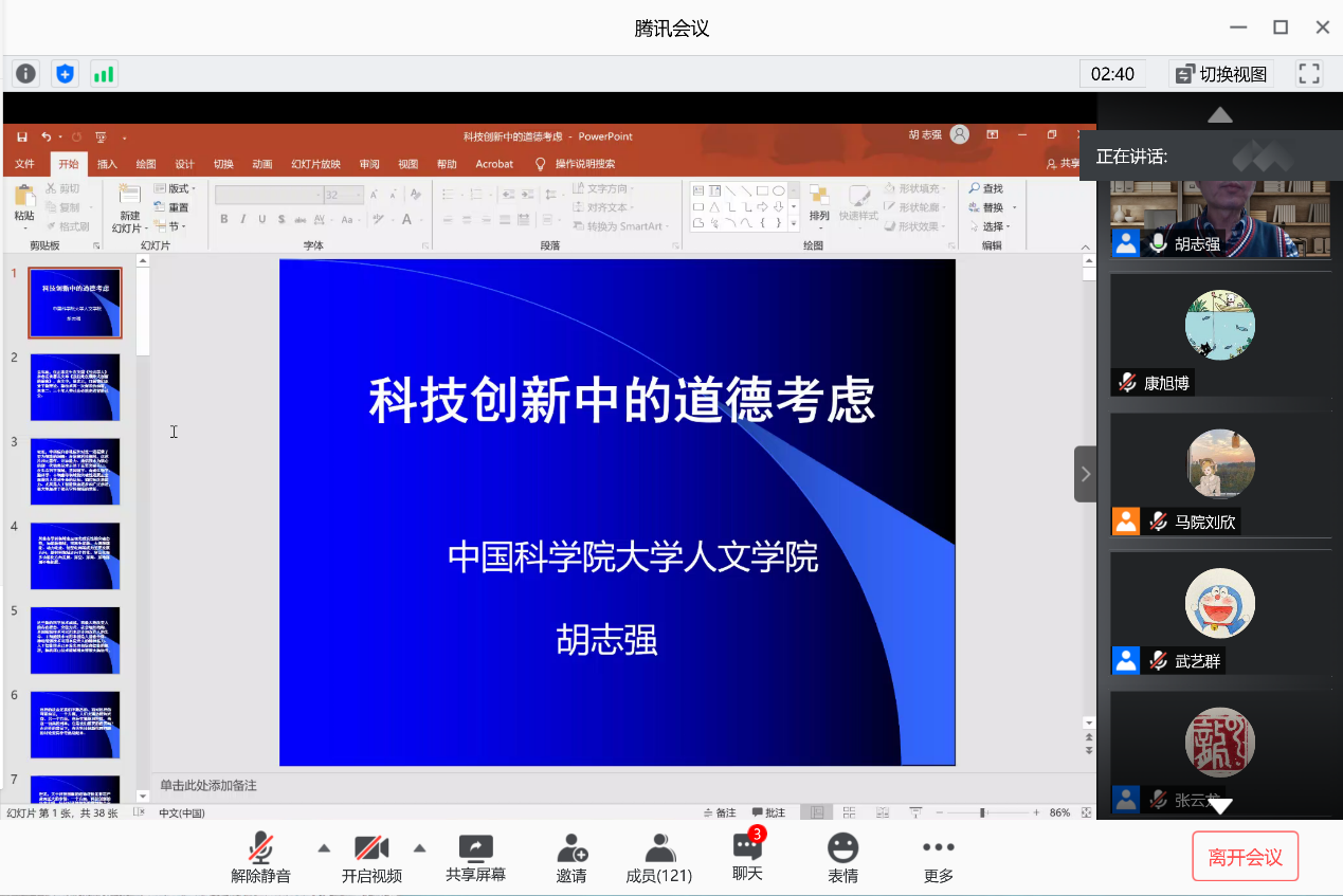报告结束,各位参会的同学在线上向胡志强教授积极请教交流,与胡志强教授进行了热烈的互动。清华大学博士后吴小安也谈到了自己通过胡志强教授的讲述,更深刻地了解到道德不仅涉及到价值问题,而且和好与坏、公平与正义等问题不可分割。