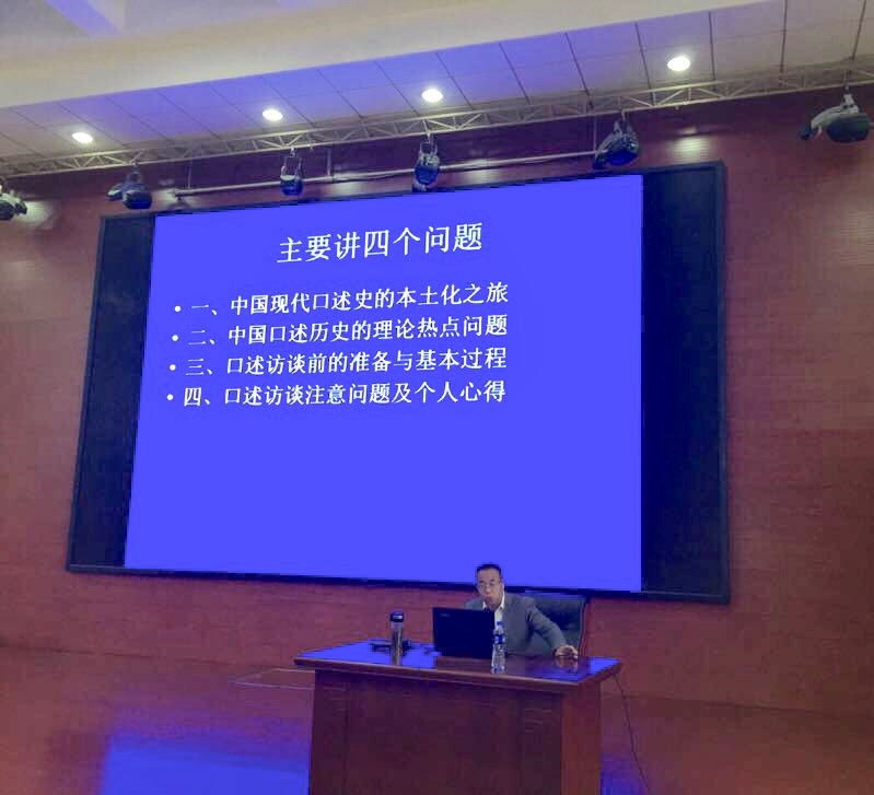 左教授认为,1980年后,西方口述史学被介绍到中国,我国的现代口述历史正式起步。随着史学观念的转变及现代电讯技术的发展,“口述历史”作为历史学的一门新兴分支学科,在中国大陆呈现出方兴未艾的良好态势,并取得不少研究成果,这些研究成果从理论与实践两个层面展示了中国口述历史的进展,主要集中在五个方面:一是口述史料与口述历史,二是回忆录与口述史著作,三是新闻采访、田野调查与口述访谈,四是事件、人物与访谈对象,五是记忆、整理及访谈参与。左教授从上述方面为师生们介绍了改革开放以来口述历史的发展与成就,并对出版的口述史著作进行了分类与整理。