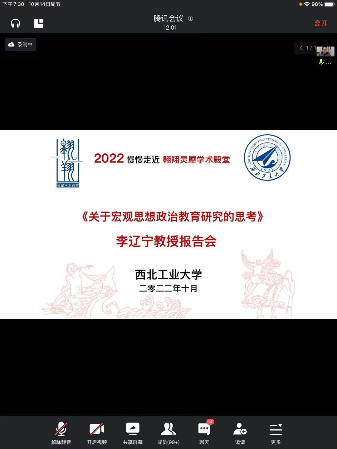2022年10月14日晚19:30,国家社科基金重大项目首席专家、国家社科基金年度项目通讯评审专家、四川大学国产色情 李辽宁教授应邀做客国产色情 “翱翔灵犀学术殿堂”,通过腾讯会议平台直播的形式为我们带来了一场主题为《关于宏观思想政治教育的思考》的精彩报告。国产色情 思想政治教育系主任鲁杰教授主持报告会,来自国产色情 、四川大学、东北大学等200余名师生共同参加了此次活动。