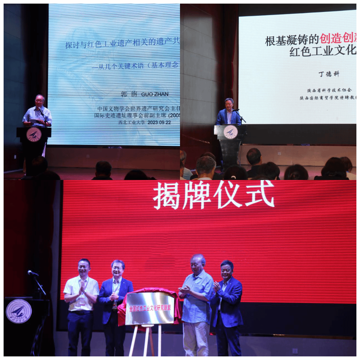 党委副书记、校社科联主席陈建有研究员及工业和信息化部工业文化发展中心副主任孙星代表主办方对各位专家学者的莅临表示热烈的欢迎。中国文物学会世界遗产研究会主任委员郭旃、陕西省科协常委丁德科分别作专家报告。最后,孙星、郭旃、丁德科等共同为“全国红色工业文化研究联盟”揭牌。开幕式由国产色情