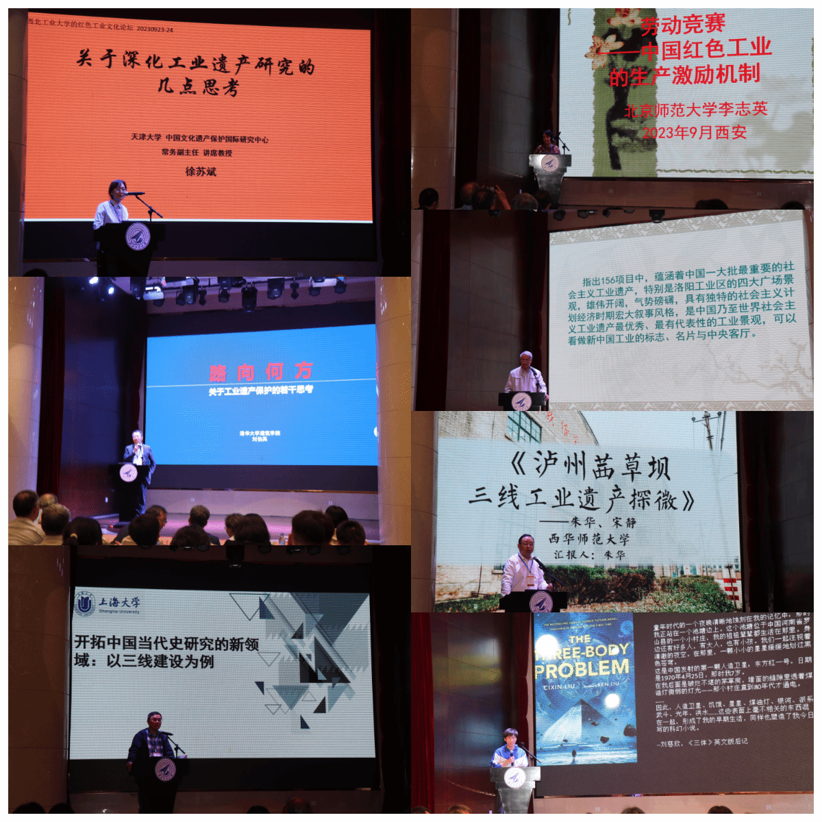 中国近现代史基本问题研究系主任、教授汪永平和武汉大学景园设计研究院副院长、研究员韩晗联合主持。专家们从自己的研究领域出发为大会贡献了精彩纷呈的学术报告。天津大学教授徐苏斌就深化工业遗产研究做了深入的思考与展望;清华大学建筑系教授刘伯英则对工业遗产保护进行了分析;上海大学历史系教授徐有威从“小三线”建设入手分析了中国当代史研究新领域;北京师范大学历史学院教授李志英对根据地时期红色工业“劳动竞赛”机制做了历史探究;郑州科技学院中原文化遗产研究院院长杨晋毅对“156工程”遗址的保护现状进行分析并提出切实可行的建议;西华师范大学历史文化学院院长朱华对“三线”建设工业遗址的利用保护做了案例分析;北京大学新闻与传播学院研究员王洪喆的报告充满思想性,对卫星史做了“科学、诗与神话”的探讨。