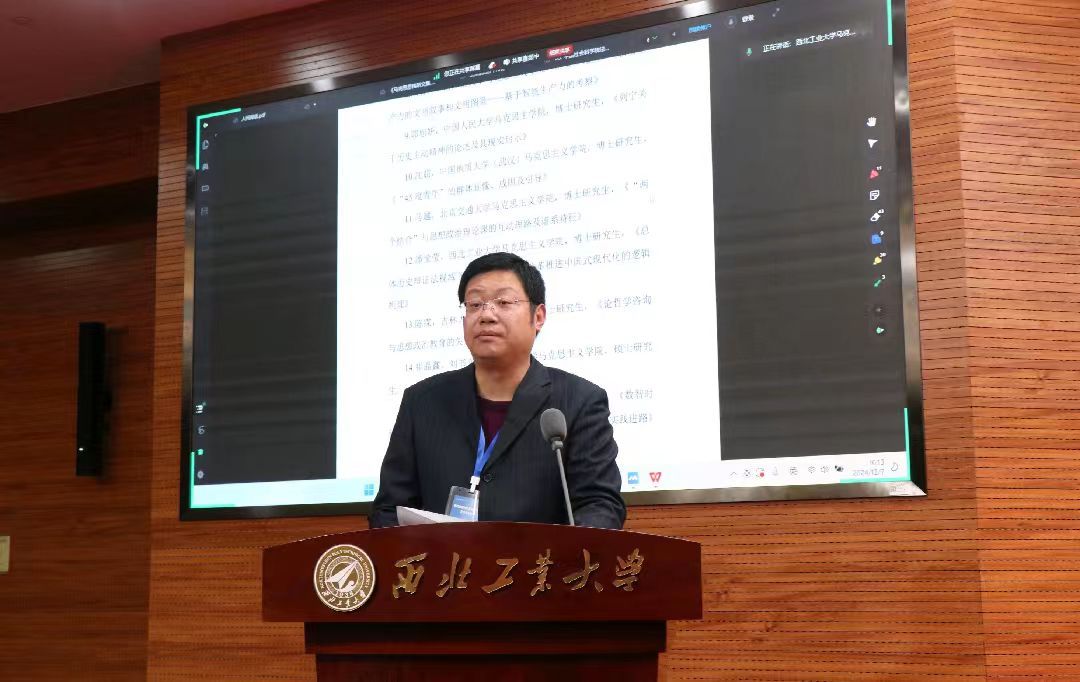 魏荣教授以“人工智能赋能思想政治教育话语传播基本问题研究”为题进行主题报告。西北农林科技大学党委宣传部副部长赵志业教授以“高校思政课双课堂教学模式构建与实践”为题进行发言。