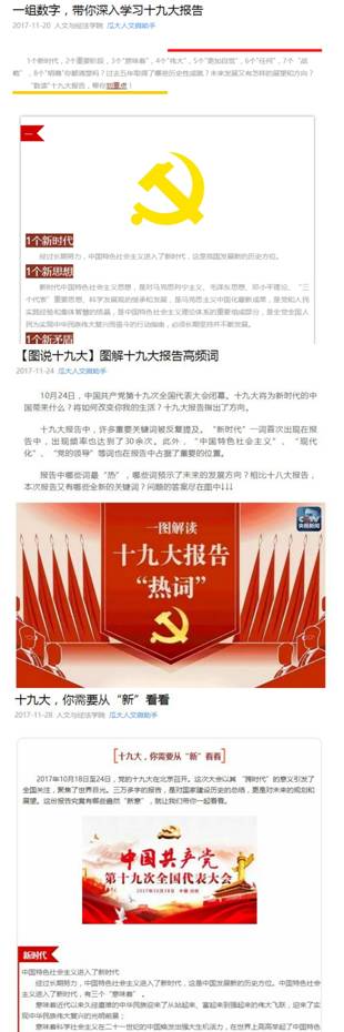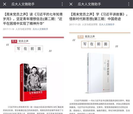 在做好规定动作的同时,学院学工组结合马院和人文学院学生工作实际,精心策划了四个方面的自选动作,力求充分发挥优势,不仅把本院的学生工作做精做亮,也为兄弟学院提供借鉴和参考。一是延续“两学一做”学习教育的成功实践,在思政专业博士生中组建党的十九大精神宣讲团。二是创新支部书记讲党课,组织全体学生党支部书记集体备课,推出回顾历次党代会的系列微党课,并通过展板和微信等线上线下相结合的方式呈现,在学生党员中发挥带头作用。三是优势互补丰富学习形式,学生党员通过反复研读党的十九大报告,从中选取了120余个应知应会关键词,联合计算机学院开发理论学习专用app,通过“你来比划我来猜”的猜词游戏模式加深学生对党的十九大报告关键词的学习和理解。四是在研究生“南山书院”的基础上,成立本科生“初心”书友会,完善学院青年马克思主义者读书体系,实现理论学习社团对本、硕、博学生的全覆盖,分层次开展读原著、学理论和研讨交流活动。