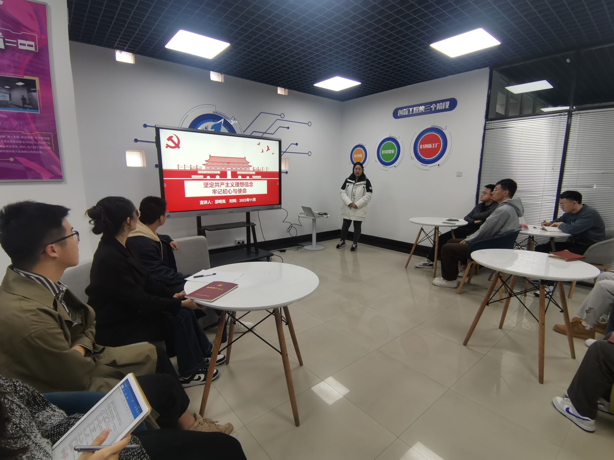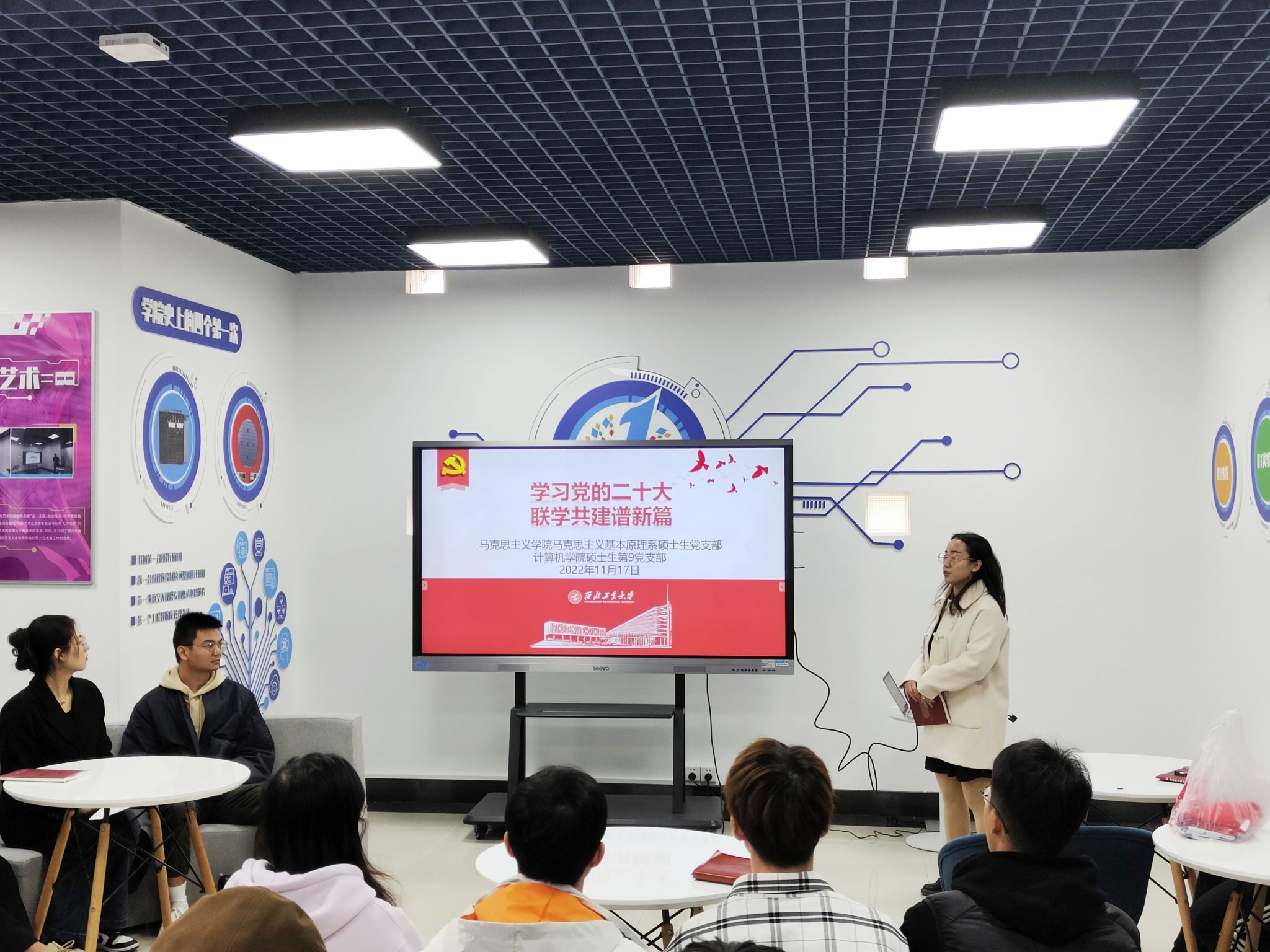 马克思主义基本原理系硕士生党支部和计算机学院研究生第九党支部联学共建,11月17日10点在计算机学院党员活动室开展“学习党的二十大,联学共建谱新篇”主题党日活动,本次会议由马克思主义基本原理系硕士生党支部书记王慧新主持。
