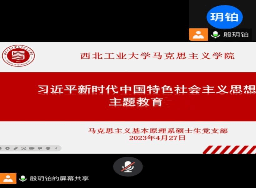 马克思主义基本原理系硕士生党支部于线上开展学习贯彻习近平新时代中国特色社会主义思想主题教育,本次会议由支部书记殷玥铂主持。