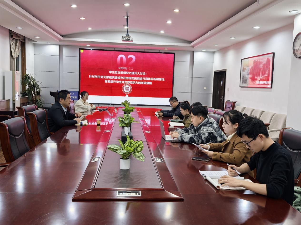党委副书记李刚、兼职辅导员王提滢、全体学生党支部书记参加此次研讨会。