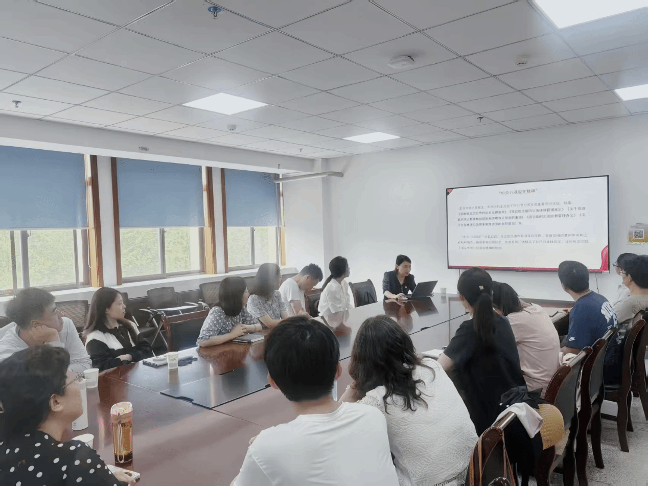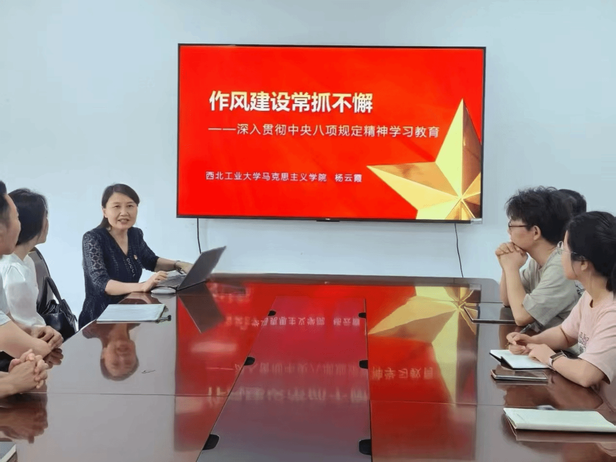 为深入贯彻中央八项规定精神学习教育,进一步加强党的作风建设,落实全面从严治党要求,切实增强党员干部纪律意识,学院院长杨云霞于2025年7月1日14:30在勇字楼702会议室为马克思主义中国化研究系党支部和博士生第一党支部讲授《作风建设常抓不懈——深入贯彻中央八项规定精神学习教育》专题党课。