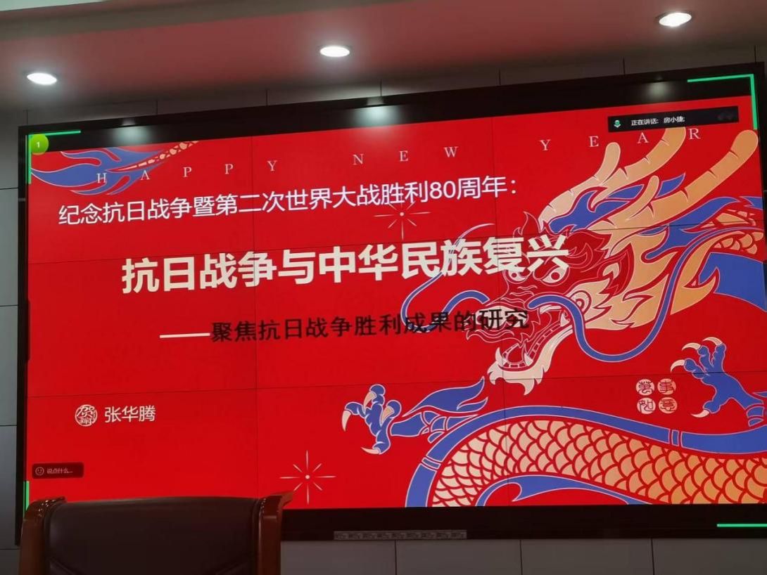 张华腾教授在报告中强调了抗日战争胜利果于中华民族伟大复兴的重要意义,梳理了抗日战争胜利果实,并着重从中国国际地位提高、废除不平等条约等五个方面,深入阐述了这些胜利果实对中华民族伟大复兴的意义。