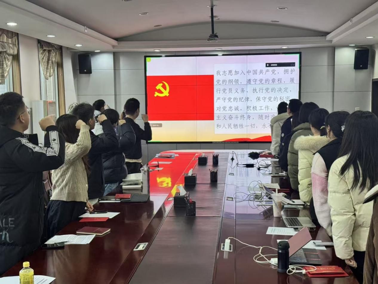 会上,党支部还为在本季度过“政治生日”的党员同志赠送了悉心准备的贺卡与纪念礼物,进一步增强党员归属感和使命感。在邵明岚同志的领誓下,全体党员面向党旗,庄严重温入党誓词,再次坚定理想信念与初心使命。