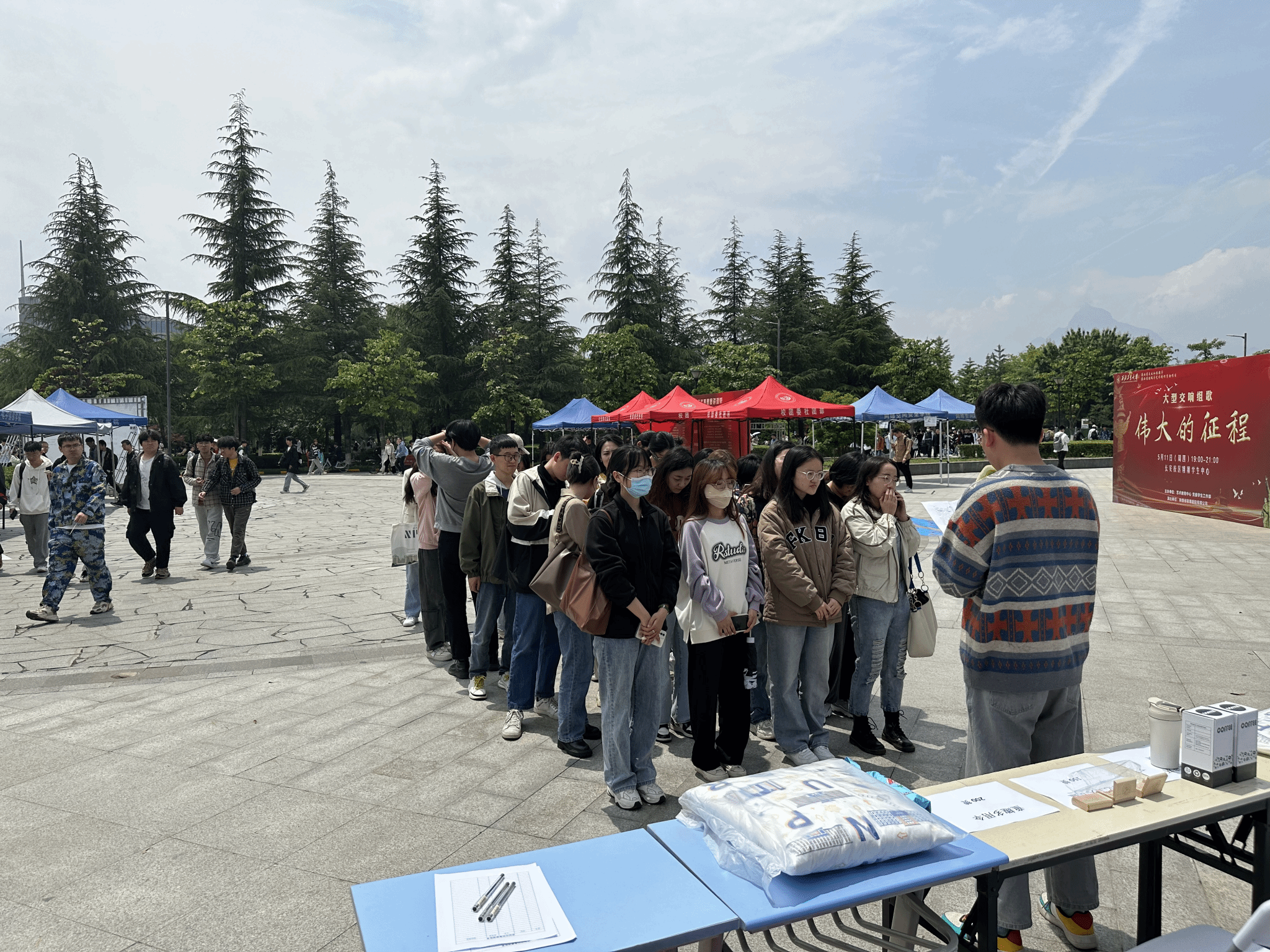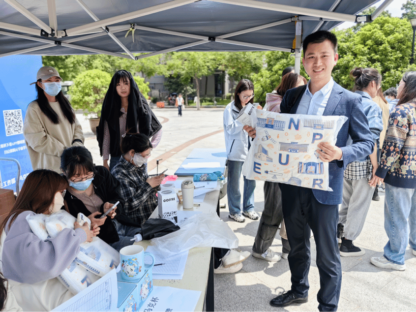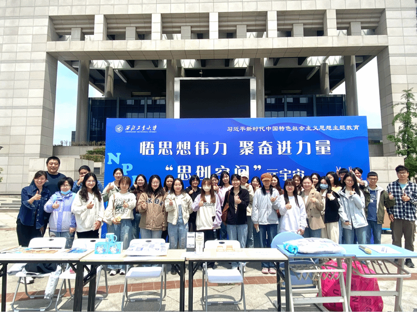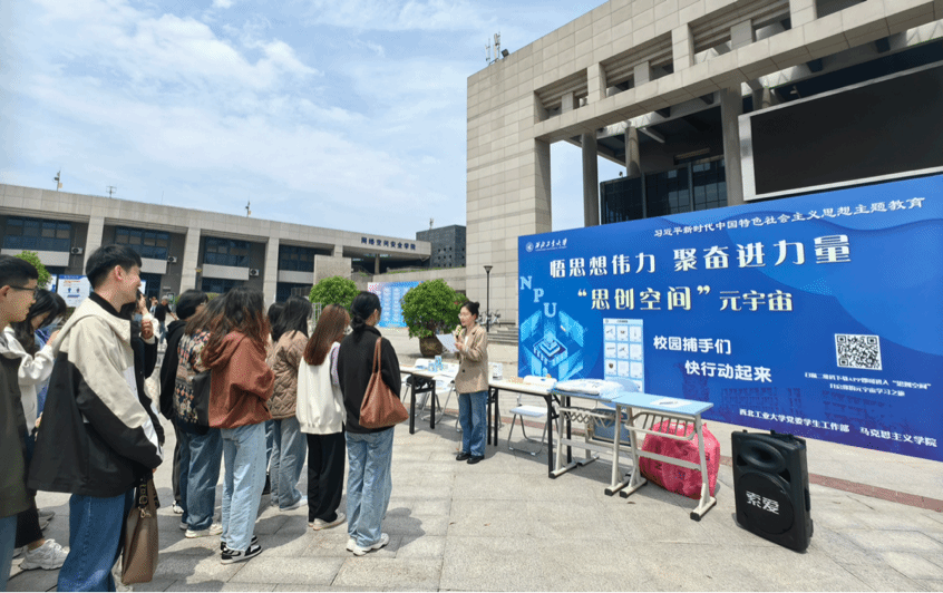 在长安校区翱翔学生中心广场前,举办了“思创空间”启动仪式,深邃海军蓝展板上“悟思想伟力,聚奋进力量”十个大字让同学们纷纷驻足参与。
