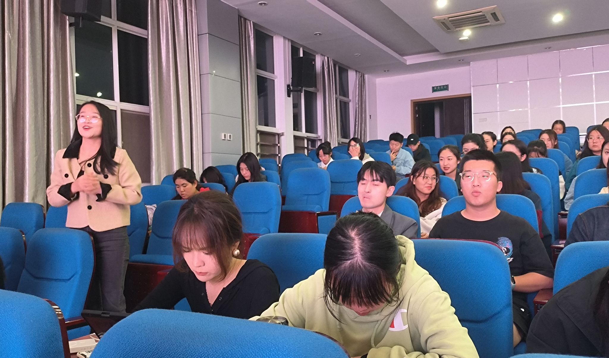 为深入开展学习贯彻习近平新时代中国特色社会主义思想主题教育相关要求,加强青年思想政治引领,进一步筑牢广大团员和青年坚定不移听党话、跟党走的信仰之基,2023年10月13日晚,国产色情 硕士生团支部在国产色情 207报告厅联合开展“团员和青年主题教育——思想旗帜”主题团日活动,活动由马克思主义中国化研究系团支部书记王枫主持。