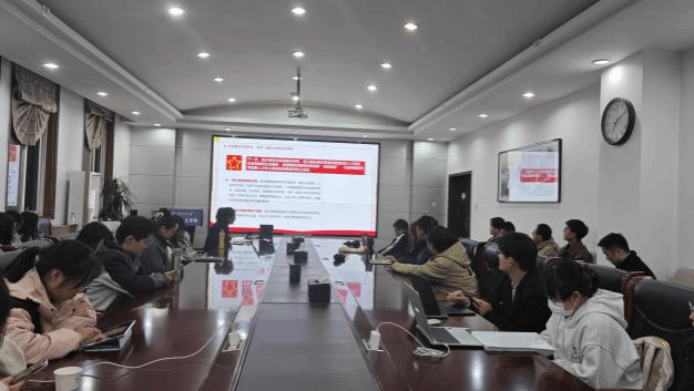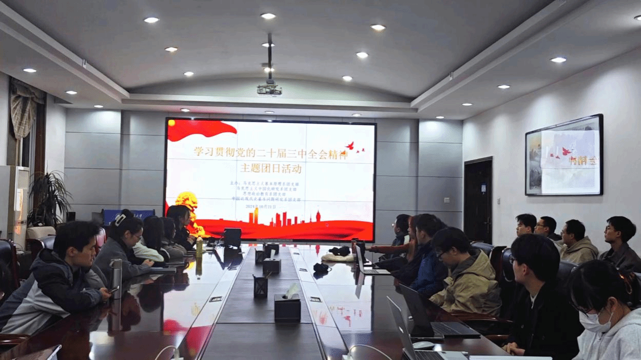 各专业硕士生团支部在学院208会议室联合开展“学习贯彻党的二十届三中全会精神”主题团日活动。此次活动由思想政治教育系团支部书记樊小燕主持。