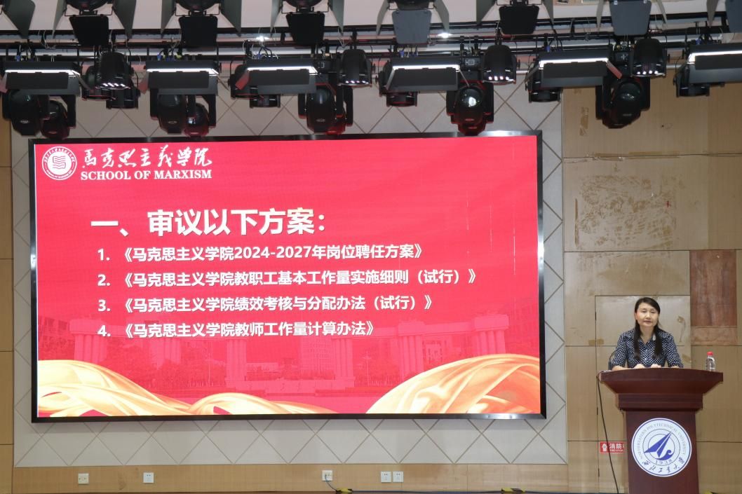 首先,院长杨云霞介绍2024-2027年学院岗位聘任方案。随后组织全体参会教职工,共同审议通过《国产色情