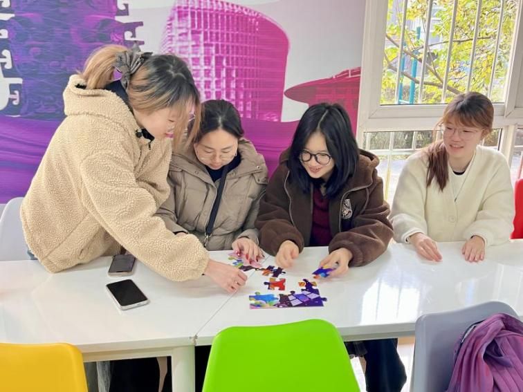在星天苑E座1楼思创空间举办拼图活动,活动以心理成长与目标规划为核心,组织同学们分为三组开展两轮比拼。第一轮活动中,各组在未获得成图提示的情况下自主摸索拼接,部分小组因缺乏明确方向效率不高;第二轮呈现完整成图后,大家快速明确目标、优化分工,拼图时间大幅缩短。通过两轮体验的鲜明对比,同学们深刻体会到明确目标与借鉴经验的重要性,活动有效引导大家在学业科研中主动汲取前辈经验,明晰成长路径与努力方向。