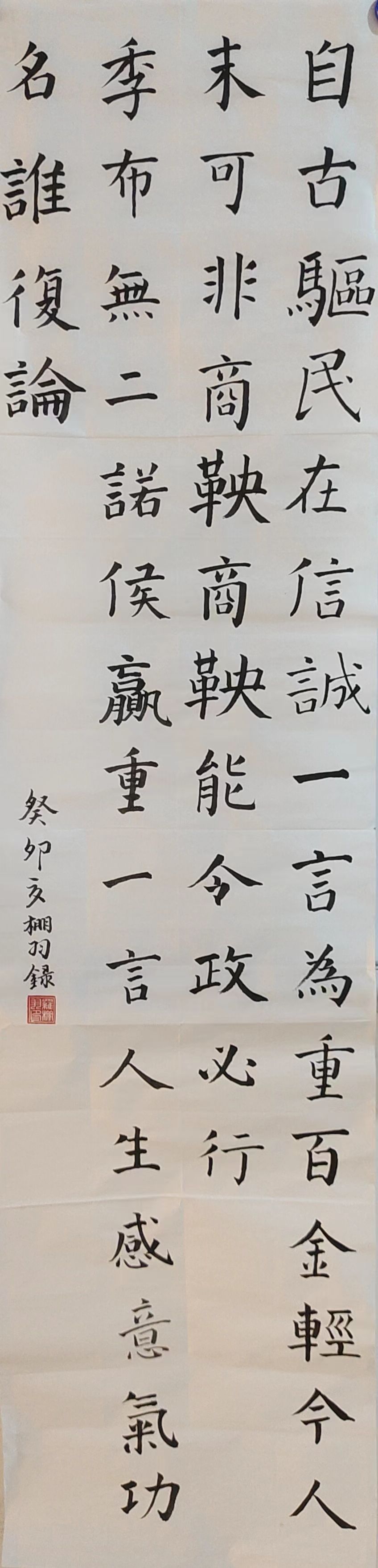 高红波老师从内容主题、笔法字型、章法布局等专业视角对作品逐一进行评审,并给出了相应的指导意见。其中郑添麒同学的作品整体布局恰当合理,结字规范,可见唐楷意蕴明显,但在某些笔法上干湿留白尚有待提高;杨京翰同学的作品笔法老道,对书体有自己的理解,有特色,可见古意,如果在布局留白互让、变化、讲究统一,则更上一层;王贝琳同学的作品整体有美感,汉字之间交相呼应、流畅衔接,现代和传统的关系处理融洽,如果在布局留白上轻重变化,处理更匀称些效果更佳等等。